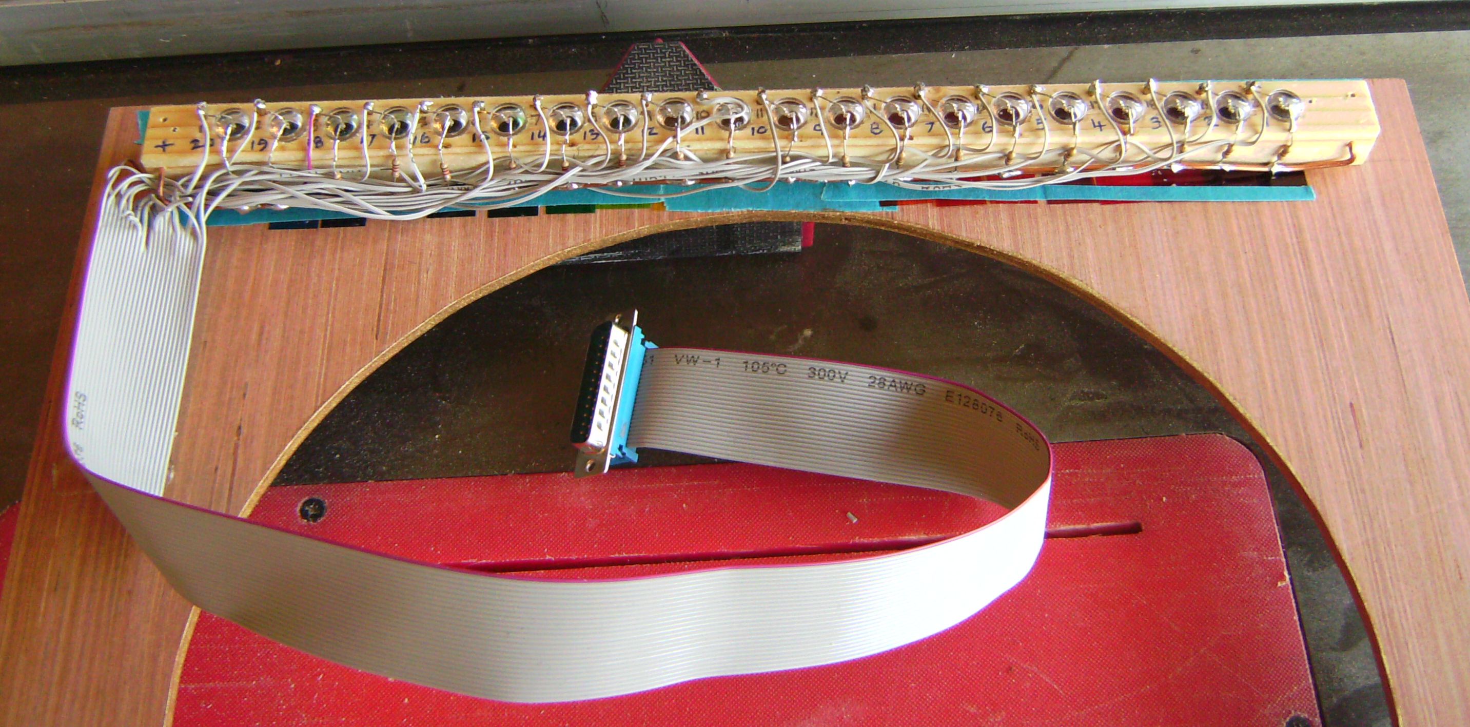 Wiring of the LEDs for the colour display. This was done twice as the first time I forgot that the wires to the connections on an IDC cable for a 25-way D Type connector do not go to Pins 1, 2, 3 4, 5 etc., but to 1, 14, 2, 15, 3, etc.